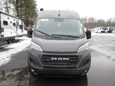 Inside, you'll find Technoform European-style high gloss cabinetry, residential vinyl flooring, and swivel captain's seats for a comfortable driving experience. You will stay powered up with the 2,800W generator and two 12V AGM house batteries, and there is a Thule patio awning with LED light strip for outside activities. The driver will appreciate the Uconnect 5 NAV infotainment center and the ParkView rear backup camera for easy maneuvering.