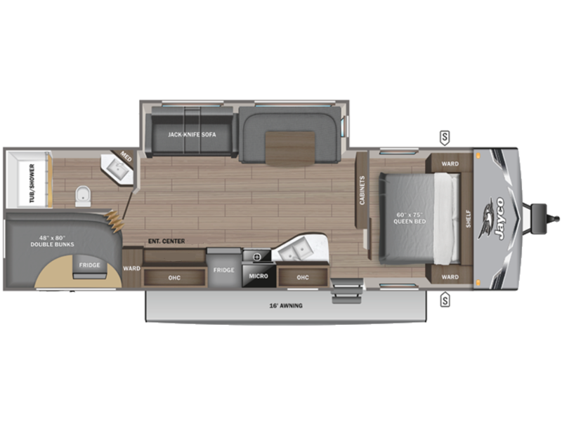With any Jay Flight travel trailer or toy hauler by Jayco, you can enjoy camping trips to the max! There are a wide variety of floorplans to choose from, so whether you're looking for a couple's unit or bunkhouse model, there is sure to be a Jay Flight for you. Each model is constructed with a Magnum Truss roof system, an enclosed and heated underbelly, and I-Class cambered structural steel I-beams for added support. The interior will have you feeling right at home with residential-style kitchen countertops and hidden cabinet door hinges, vinyl flooring throughout, including slide floors, plus a 6' 9" ceiling height for added head space. The standard features continue on with the mandatory Customer Value Package