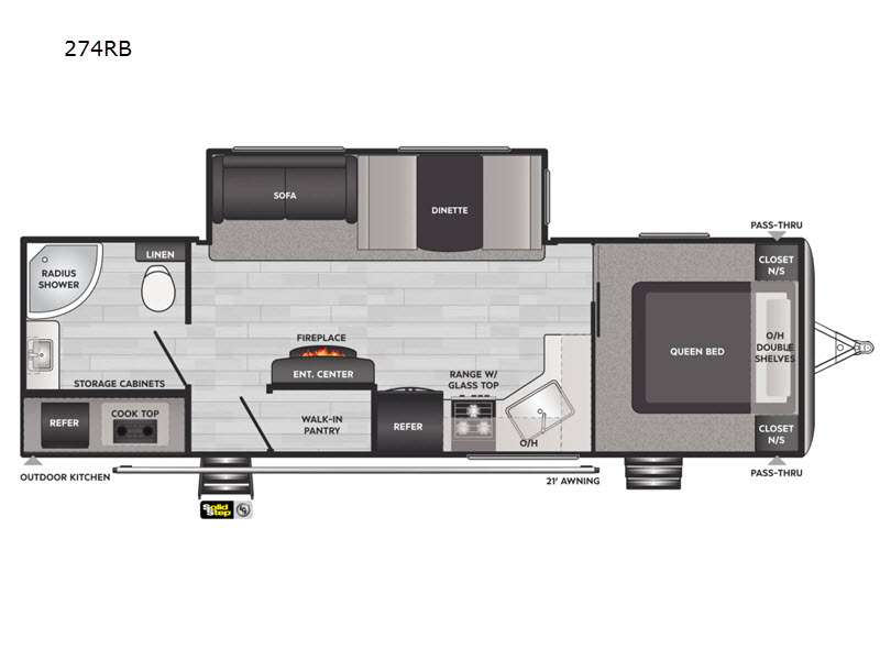 You will love camping in this comfortable Springdale travel trailer! The cook in the family will love having this kitchen and the walk-in pantry for all of your non-perishables. There is even a small fridge outside for a few drinks, so you don't have to walk all the way back into the trailer for a cold beverage, and the outdoor cooktop will be especially helpful when you prepare dinner when visiting with others relaxing under the 21' power awning. Once your adventures are done for the day, you can fall asleep in the private front bedroom, and there is a booth dinette and sofa in the main living area that can be used for relaxing, eating, sleeping and enjoying one another's company.