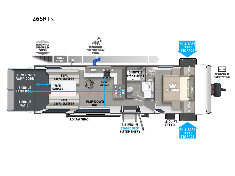 Forest River Salem FSX MAX Series toy hauler 265RTK highlights:
